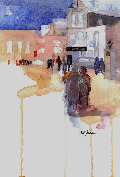 Killarney is a busy tourist town as it’s the most frequented overnight stop for tourists visiting the Ring of Kerry and Killarney National Park. This painting is of the corner where Casey’s combination audio/visual and liquor store sits.