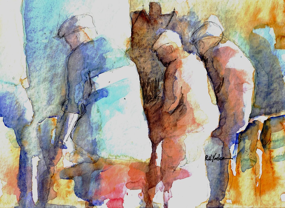 A popular activity is to hire a jaunting car in Killarney town. Jaunting cars are a traditional feature of the National Park. Below is a rendering of the jaunting drivers around Muckross.