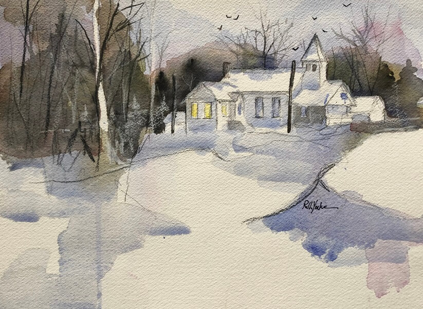 Winter has arrived in the Northeast. While I’m enjoying warmer weather now, winter scenes have always been something I enjoyed painting. Queen Bee tells me that “nobody wants to see snow,” but I tend to think otherwise. What do you think?
