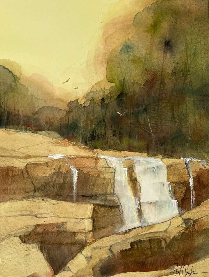 This is the second painting in the Swallow Falls series, called Drop-off.